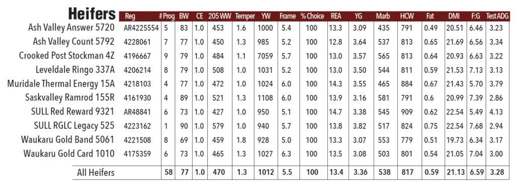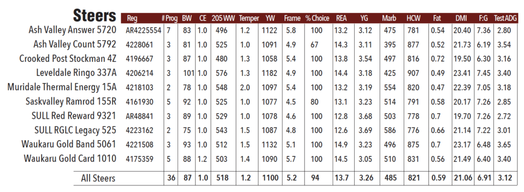 On the next page, you will find a table comparing the data for the NST heifers and steers separately. With each bull not having equal numbers of male and female progeny, it’s not a fair comparison to lump all offspring together. Like always, I prefer to let you as breeders draw your own conclusions from the data rather than tell you what should be important. Nobody knows your operation better than you and what you want to emphasize in your breeding program. From studying the data in general terms, there are a few “big picture” points I would like to touch on.