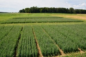 The trials summarize yield performance of 34 alfalfa varieties and 11 annual ryegrass varieties. The cover crop trial summarizes stand establishment and ground cover development in the fall after a mid-September seeding in 2017 and winter injury, ground cover and spring biomass production in the spring 2018 of 22 cover crop varieties including rape, turnip, annual ryegrass, radish, Balansa clover, winter pea, and hairy vetch.