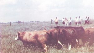 The steers (shown in the picture) don’t look much like cattle do now. These steers were not straight black or large framed. In fact they were harvested at 900 lbs.! Marbling is, to a large degree, a function of maturity. In other words, once a calve stops growing, it then begins to lay on external and, hopefully, internal fat (marbling). Thus, early maturing (smaller framed) cattle might work better for forage diets. Cattle on this trial averaged slight-plus marbling (enough to grade USDA Select plus). As I bred the cattle for more size and growth, it became more difficult to maintain marbling ability. We now look for those “outliers” that possess extra marbling ability.