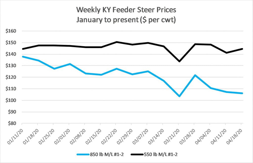 A lot of fall calving herds are weaning calves around this time and those calves are selling for more than $100 less than I would have predicted at the first of the year. The price impact per head is likely even greater on heavy feeder cattle – I’d probably put it somewhere in the $125-$175 per head range. These are significant hits to incomes that will not be easy to recover from. Producers should also keep an eye out for any announcements from USDA about any direct payments to cattle producers from the CARES Act that may help offset a portion of these losses.