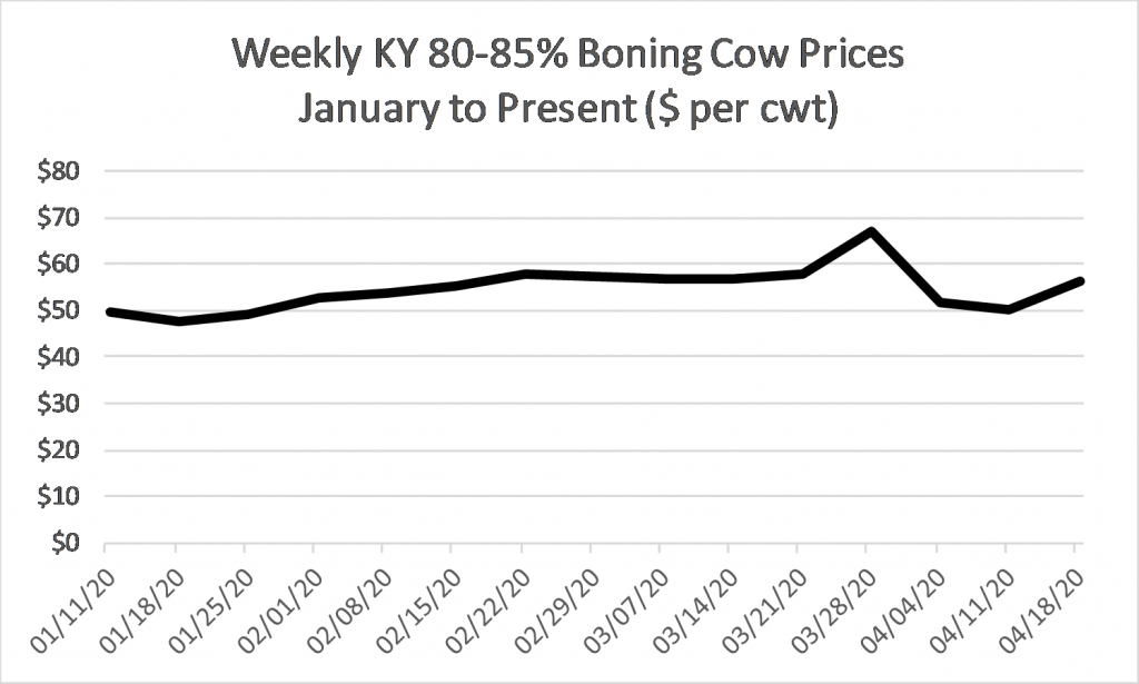 It was another light week in terms of marketing in KY and this has largely been the case since the end of March. This really is a trend industry-wide as feedlot placements and cattle slaughter are both running well below expected levels. Several processing plants have announced temporary closures and a lot of others are running at reduced capacity, likely to take measures to reduce the likelihood of closure in the future. Of course, there are significant incentives for processing plants to resume operations as soon as they practically and safely can. It was inevitable that cattle would back up in the system as COVID-19 impacts lingered, but the longer it continues the more it will stretch out the length of the recovery. This is definitely something to watch in the coming weeks.