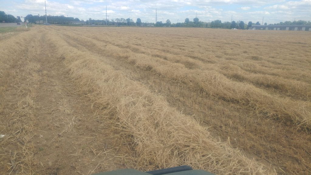 The cereal rye was killed with glyphosate at bloom, and allowed to stand for 10 days until a harvest window became available.