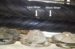 Uneven roll wear can result in poor conditioning across the length of the rolls. Photo provided by Jason Hartschuh.