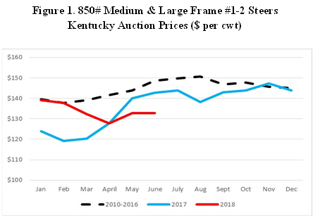 I always like to see the fed cattle market put in its summer lows and there are some indications that this has already happened for 2018. August CME© Fed Cattle Futures have rallied from late May and deferred futures are trading at a premium to August. Kentucky feeder cattle markets were relatively flat from May to June. Heavy feeder prices in Kentucky were basically unchanged over the last two months, but it was very encouraging that they held the ground they gained after April (see figure 1).