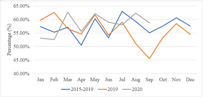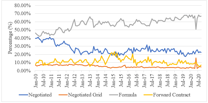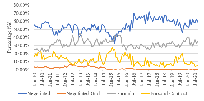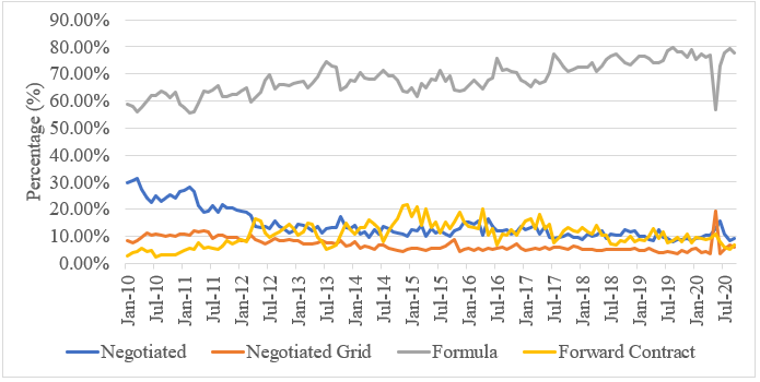 Figure 2. Historical Percentage of Live All Cattle Transactions, 2010-2020