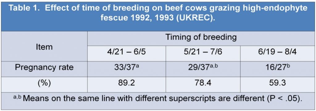 Most Kentucky beef producers have spring-calving cow herds that graze fescue pastures which have high endophyte levels. Getting a high percentage of cows bred in May, June, and July to calve in March, April, and May can be a challenge. I personally prefer fall-calving for that reason, but I also believe that we can have successful breeding performance in the spring.