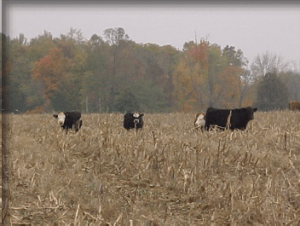 Rough estimating, corn stalks should be stocked at the rate of 1,000 pounds live weight per acre per 30 days. Though it can vary a lot, most corn produces about 56 pounds of residue per bushel. So, a 200 bushel corn crop should yield about 11,000 pounds of residue. Of that residue, about 40 percent is leaf and husk, the part that is most readily consumed. So in this example, there is about 4,400 pounds of desirable grazable fodder available or about 75 animal unit days at 50 percent harvest efficiency; and yes, they are going to waste some. One animal unit, which is 1,000 pound live weight, will consume about 3 percent of their weight in dry matter per day or roughly 30 pounds of fodder. You can do your own math from there using your livestock numbers and acres that can be grazed. Certainly, if annuals are also part of the picture, then there is even more available.