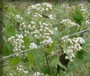There are a few droughty areas left around the state. When forage is limited and if white snakeroot is present, remember this poisonous plant can be a problem. At this time of year the plant has numerous heads of small white flowers and is quite common along woodland edges, woods and streams. Livestock normally will avoid consuming white snakeroot under typical growing conditions, but as ample, desirable forage declines or disappears, poisonous weeds start looking good. Whether eaten in large amounts at one time or in small amounts over a period of time, both can be fatal. Nursing animals are often affected from the milk which is commonly fatal with no signs of ailment from the adult. If your grazing livestock have access to potential problem areas, it would be best to scout the area ahead of grazing. Small patches of plants can be removed but if there are too many, keep the livestock out! Leaves of the white snakeroot are opposites, have toothed edges, and taper to a point. I have been seeing quite a bit of this plant this fall. If you have problems identifying this plant, contact your local extension office for assistance.